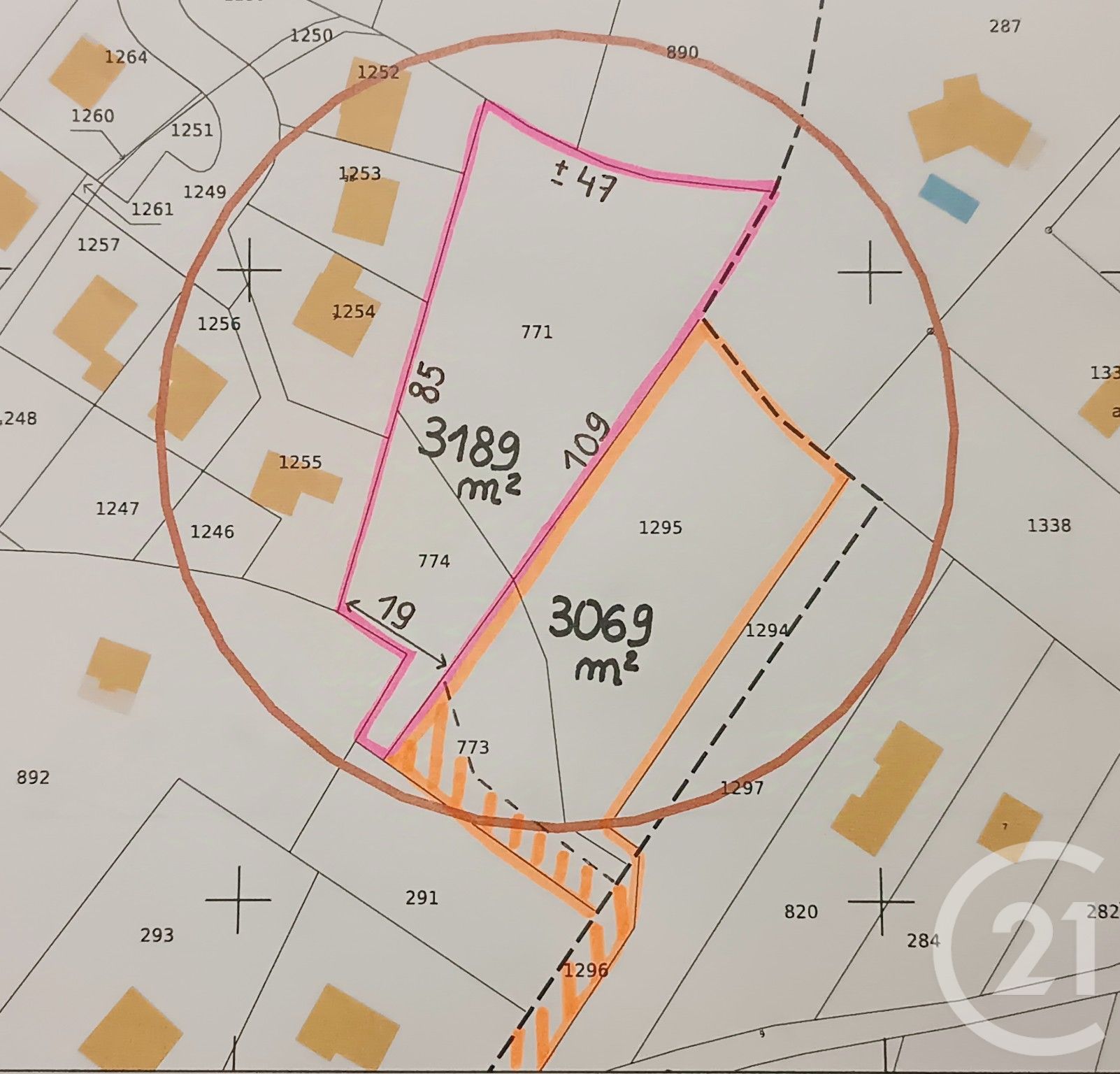 Possibilité d'acquérir un second terrain attenant de 3189 m², proposé au même prix, permettant de bénéficier d'une superficie totale de plus de 6000 m² de terrain constructible.